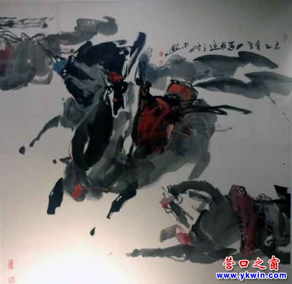 中國水墨畫之特點:“氣韻生動,以行寫神”。最早映入眼簾的“畫馬”之作,堪屬徐悲鴻先生。時至今日,與戚弘先生在墨彩中相識,堪為機緣。“水墨畫的舞者”——戚弘先生的作品,用水調(diào)出墨的色彩變幻,猶如洶涌澎湃的波浪,再分娩成脫韁的野馬,濃墨處緋紅了時間的記憶,淺淡處透明出一彎明月的優(yōu)美。