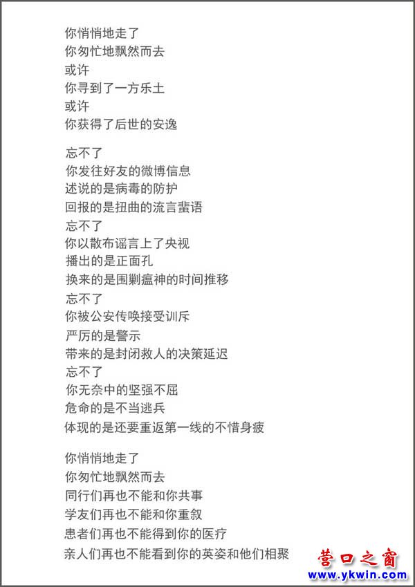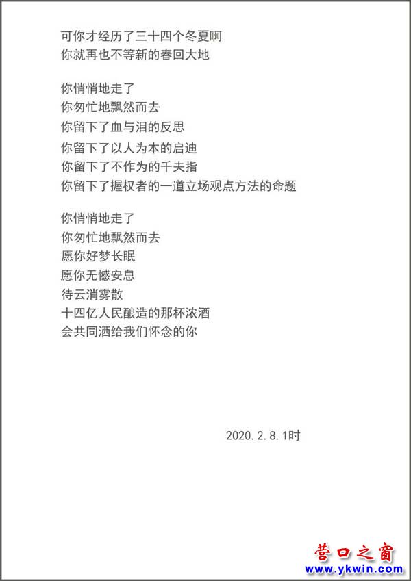 濃酒灑給你 祭奠李文亮——營口之窗專題作品選——營口之窗網(wǎng)“控疫情、歌盛世”詩詞征集作品選 |