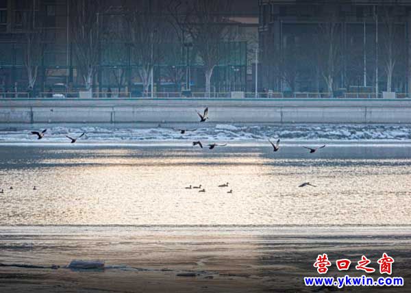 (營口之窗“方寸天地”)今天去營口河沿遛彎,看到了河里的美景。大遼河還沒解封,就迎來了第一批客人,幾十只野鴨子游蕩在河里。優(yōu)哉游哉的。生態(tài)環(huán)境好了,野生動物也早早的來報到啦。