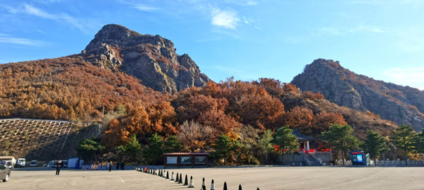 赤山位于營(yíng)口市蓋州萬(wàn)福鎮(zhèn),海拔891.1米,五座石峰有如人的五指,并排而立直插云天,因山峰巖石呈紅色而名赤山。赤山早在唐初就是遼東名山之一,清代時(shí)成為遼南道教名山。赤山以峰奇、洞異、泉清、石怪、寺古而聞名。日前,同友人一起登山游覽,真是好一派熱烈的金秋景色。