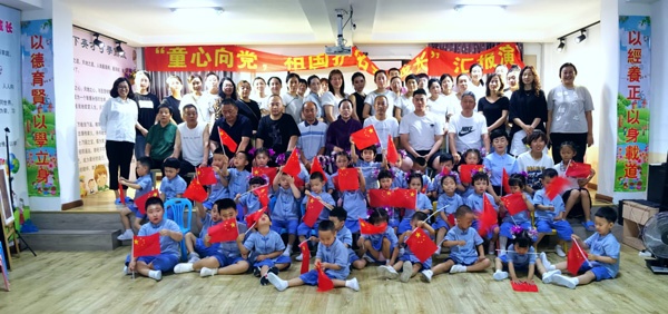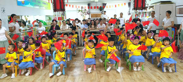 小朋友、老師和家長(zhǎng)們共唱《沒(méi)有共產(chǎn)黨就沒(méi)有新中國(guó)》。