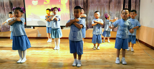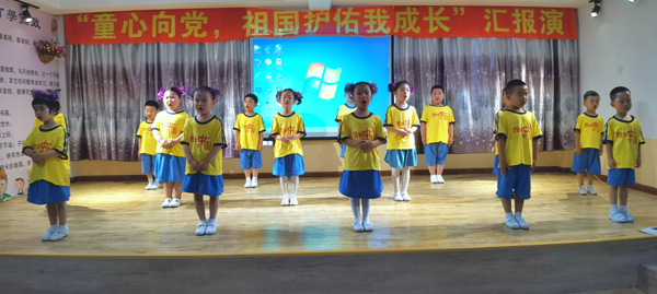 演出于下午三點(diǎn)開(kāi)始。四十多名小朋友和四十多位家長(zhǎng)歡聚一堂,歡歌笑語(yǔ),掌聲時(shí)起。吟誦傳統(tǒng)國(guó)學(xué)童聲朗朗,韻味十足。朗誦毛澤東詩(shī)詞語(yǔ)句鏗鏘有力,情感豐富。張張笑臉,如花兒般燦爛可愛(ài),聲聲演唱,如銀鈴般甜美動(dòng)聽(tīng)。舞動(dòng)翩翩,如同美麗的蝴蝶在舞臺(tái)上飛舞,舉手投足,活潑可愛(ài)。童心向黨,天真爛漫。十幾個(gè)小節(jié)目,表演下來(lái)令我們?nèi)缱砣绨V,感動(dòng)不已。