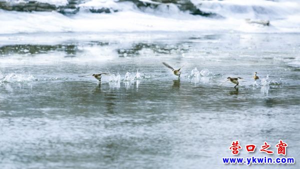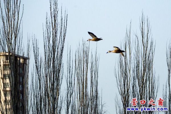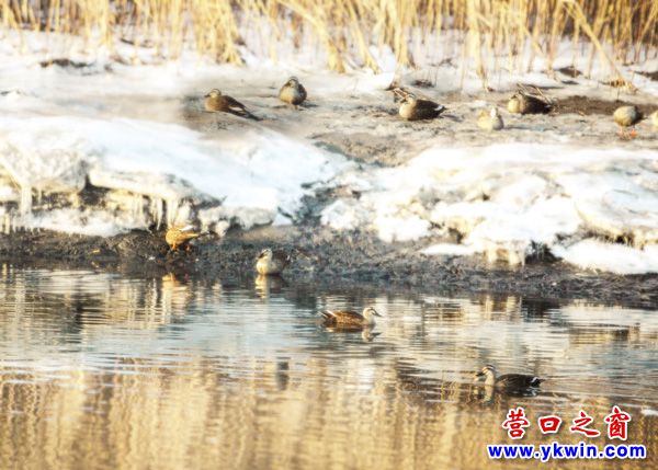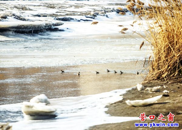 營口,雖然外面還是冰天雪地,一派北國風(fēng)光??墒谴航喯戎戎扔X的野鴨子等候鳥,已經(jīng)迎著萌動的春意,來到了營口市民興河里游玩了。請看:
