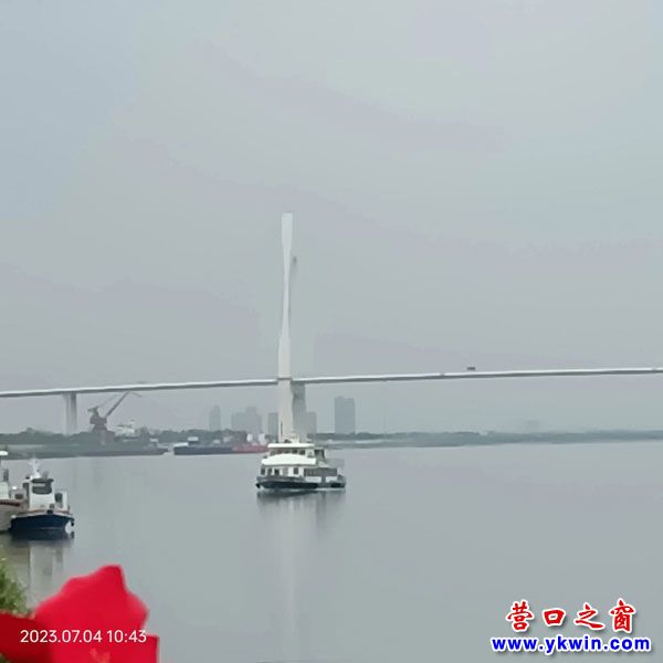 仲夏有余日,暢旅大遼川。墜龍?zhí)J蕩,距今營(yíng)口問(wèn)何年。南塢登輪新渡,北岸尋查古跡,夢(mèng)想已蹁躚。神話變橋越,橫亙面潮懸。