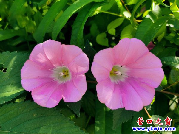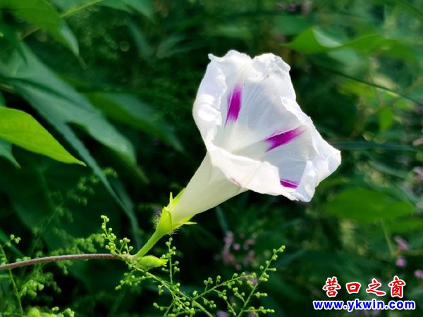 在我晨練經(jīng)過的路兩側,盡管都是田邊、地角、草地、溝坡、籬笆或灌木,卻蓬蓬勃勃盛開著粉、紅、紫、藍、白等各色的牽?;?。一片翠綠中,一朵朵牽?;◣е吨?、迎著晨光昂揚開放。放眼望去,令人賞心悅目,精神振奮。