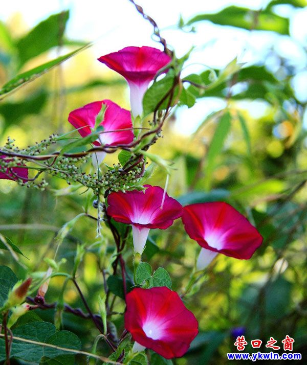 牽?;?,又叫喇叭花。因為不挑剔土地瘠薄,不畏懼環(huán)境惡劣,堅韌頑強、不屈不撓、勇于攀登向上,花開色澤艷麗、歡快吉祥,深得人們喜愛。