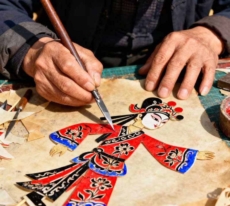 蓋州皮影戲的影人,皆是匠心之作。驢皮經(jīng)泡制、刮薄、刻鏤、彩繪,方才成了栩栩如生的角色。藝人們手中的刻刀鋒利,一筆一劃,刻出精細(xì)的花紋,染上明艷的色彩,紅的熱烈,黑的沉穩(wěn),藍(lán)的雅致,方寸影人,藏著萬千乾坤。作為北方影戲的重要支脈,蓋州皮影戲帶著遼南的豪爽與質(zhì)樸,唱腔高亢婉轉(zhuǎn),道白生動詼諧,一折戲唱下來,滿是營川煙火氣。