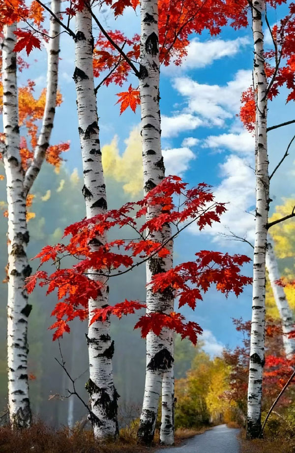 秋瑟瑟、雨凄凄…不是這里的主旋。這個群體的主題詞是: 筆直向上,提升自己!于是,能讀懂白樺的紅葉,在這里熱吻了白樺、直言了志向、傾訴了衷腸.....