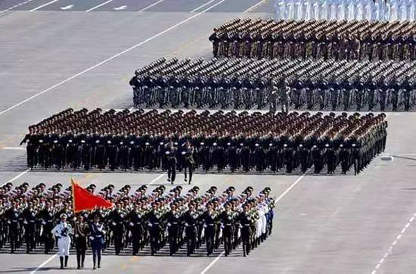 倒海排山,洪流滾,三軍受閱。齊步調(diào),準(zhǔn)同鐘擺,聲徊九闕。方陣雄威驚鬼魅,長(zhǎng)龍霸氣凝風(fēng)月。暢心懷,屈辱百年羞,今朝雪。