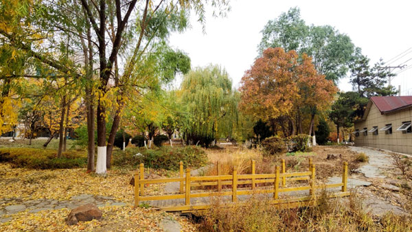 城市里因地制宜建設(shè)的口袋公園,發(fā)揮著大型公園不可替代的作用,為市民提供了休閑娛樂、運(yùn)動健身、文化教育等多方面的便利。特別是對老年人來說,就地就近,更是一種福利,深受歡迎。筆者多次到過鲅魚圈區(qū)昆侖大街和蝴蝶泉路交匯處得一處小公園。這里栽植有各種樹木、花草,有小橋、流水,有石桌、石凳,有小型場地。隨著四季變換,景色也變化無窮。正是小公園,大福利,好風(fēng)景。眼下,正值深秋季節(jié),只見公園里呈現(xiàn)著赤、橙、黃、綠、青、藍(lán)、紫等各種色彩,分明就是一幅五彩畫卷。有的老人在這里散步,有的在打拳,有的在閑聊,有的在扭秧歌。