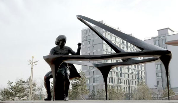 營口紅旗音樂廣場主體臺上左右兩側(cè),雕塑兩位男女鋼琴演奏家。他們用嫻熟的雙手演奏(可愛的中國)琴聲蕩激天外。