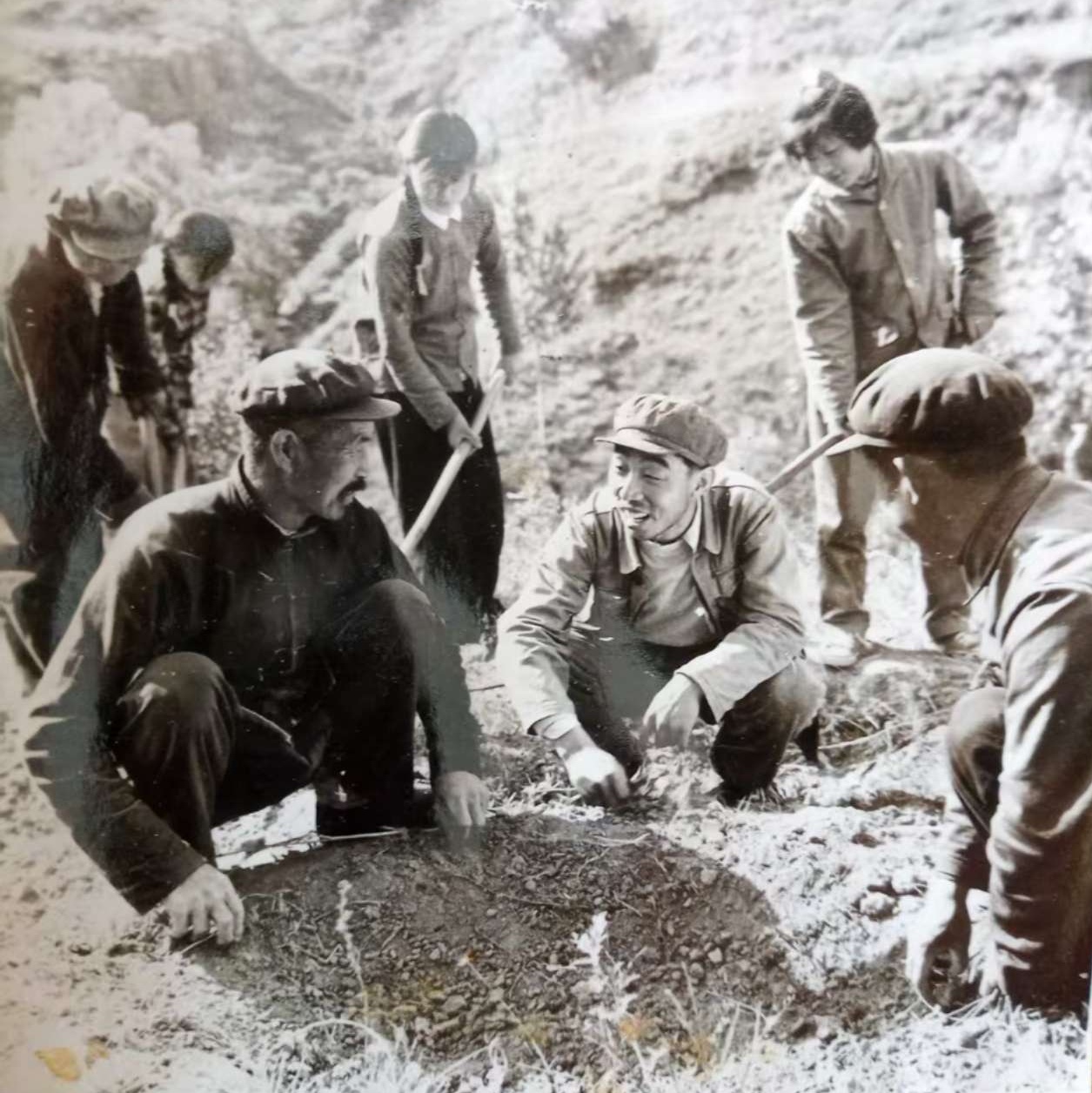 (圖為祖父在革命老區(qū)和老鄉(xiāng)探討游擊戰(zhàn)經(jīng)驗(yàn)——前中)