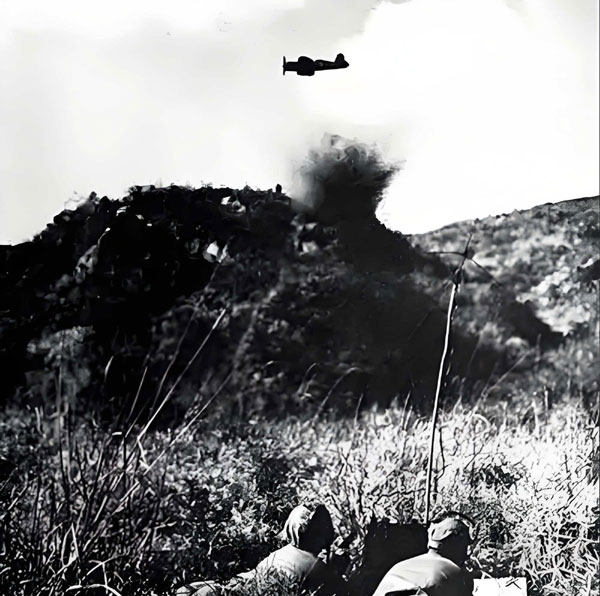 敵機(jī)再次俯沖,投下兩顆炸彈。爆炸震得泥土飛濺,彈片削斷了大量樹(shù)枝。