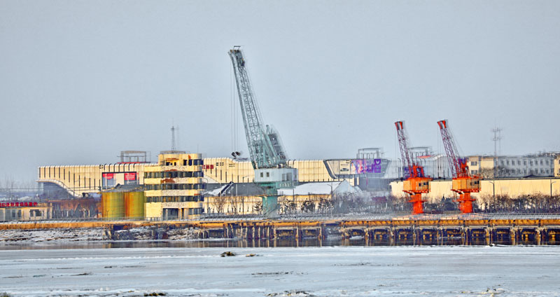 碼頭的水泥樁子凍在冰里,上面還留著繩索勒出的深痕。不遠處的老建筑,墻皮剝落得像一本被翻舊的書,褪色的標(biāo)語與廣告牌,還能辨認出“營口港”的字樣。這是東北最早的對外通商口岸,曾在《天津條約》的墨跡里迎來第一艘外國輪船,也曾在抗日戰(zhàn)爭的炮火里,見證過碼頭工人的抗?fàn)帯?/p>