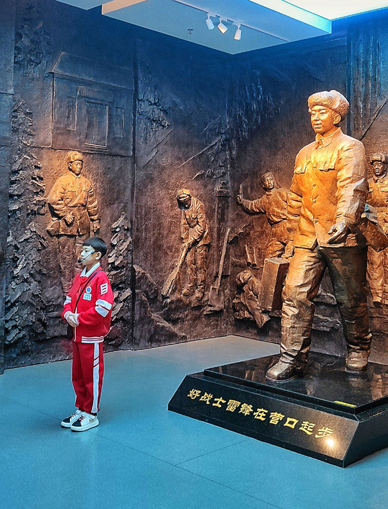 這是雷鋒軍旅的起點(diǎn)。他在這里寫下第一頁(yè)軍營(yíng)日記,在新兵營(yíng)的臺(tái)上即興發(fā)聲;寒風(fēng)里幫勞動(dòng)小學(xué)掃雪,候車室里默默擦拭座椅、幫老人提行囊、替婦人抱稚子,軍裝的黃,是那年冬天最暖的光。