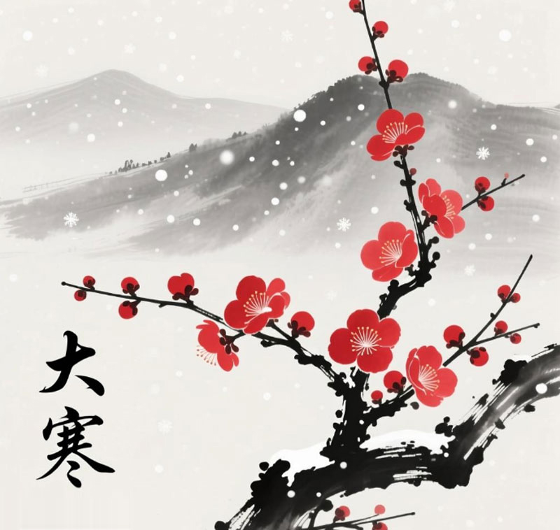 大寒時(shí)節(jié)近年關(guān),風(fēng)送梅香繞九寰。