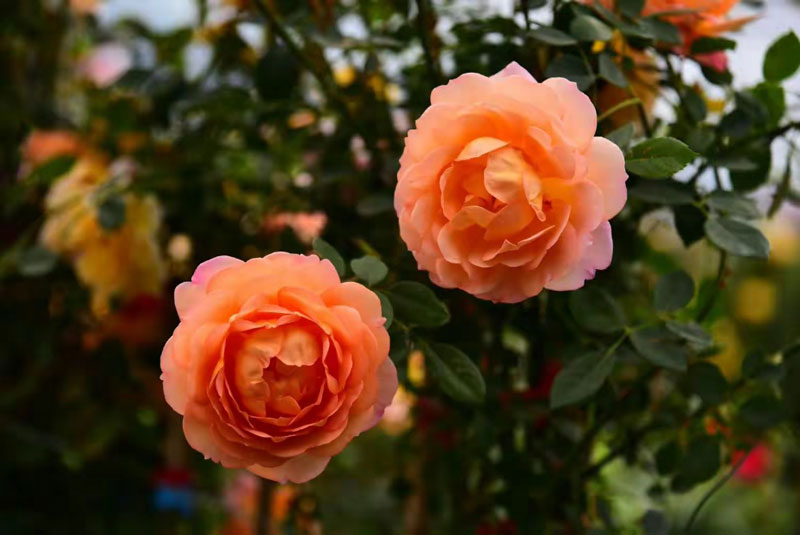 紫色的藤蔓花如瀑布傾瀉而下,層層疊疊的花瓣在柔和光線下泛著光澤,交相輝映,營造出豐富的視覺層次。身旁的繡球花團(tuán)錦簇,淡粉、橙黃、柔粉的花朵次第展開,有的含苞待放,有的已露蕊心,綠葉襯托下更顯嬌艷。它們攀援成墻,構(gòu)成一道浪漫花廊,微風(fēng)拂過,暗香浮動(dòng),令人駐足流連。勾勒出一幅有序而自然的園藝畫卷。