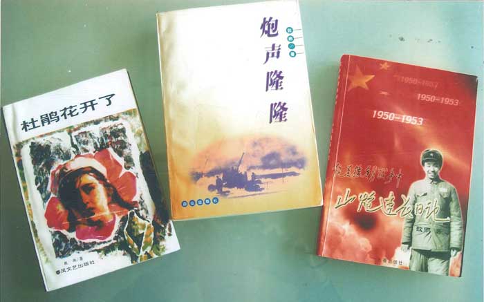 黃云騰離休后寫的三本書;《杜鵑花開了》《炮聲隆隆》《山炮連長日記》,弘揚抗美援朝精神。