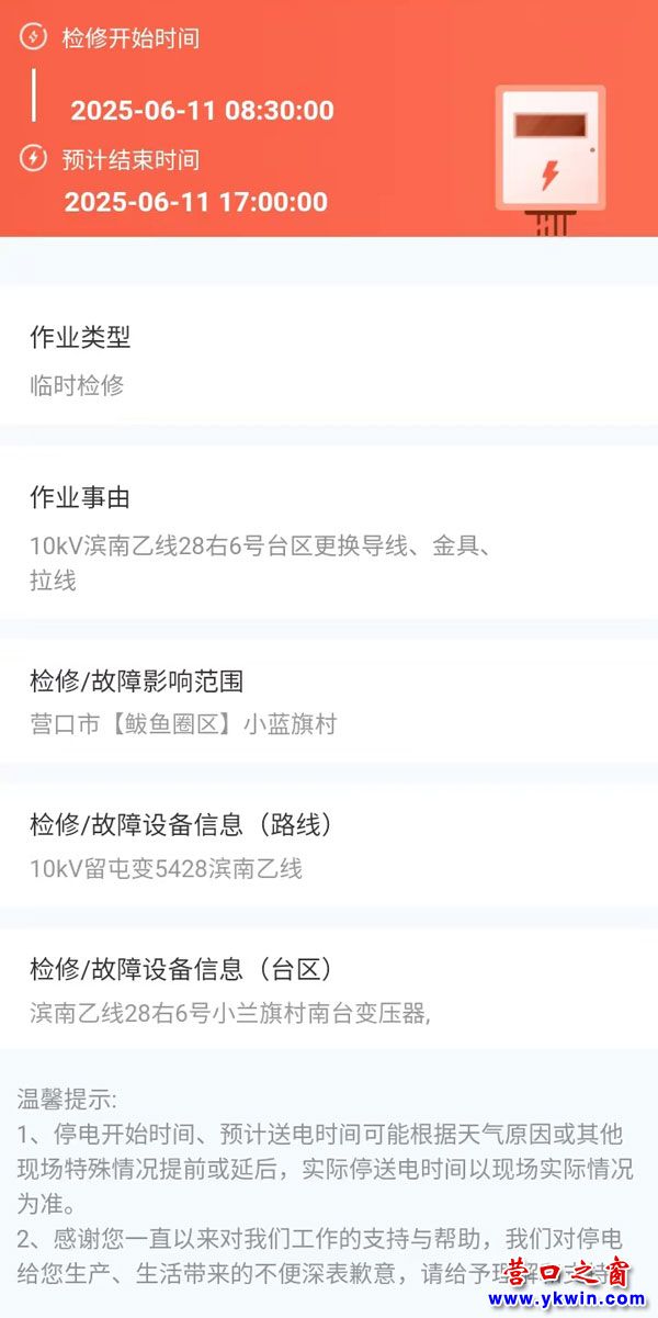 2025年06月11日 鲅魚(yú)圈區(qū)電網(wǎng)檢修公告 |