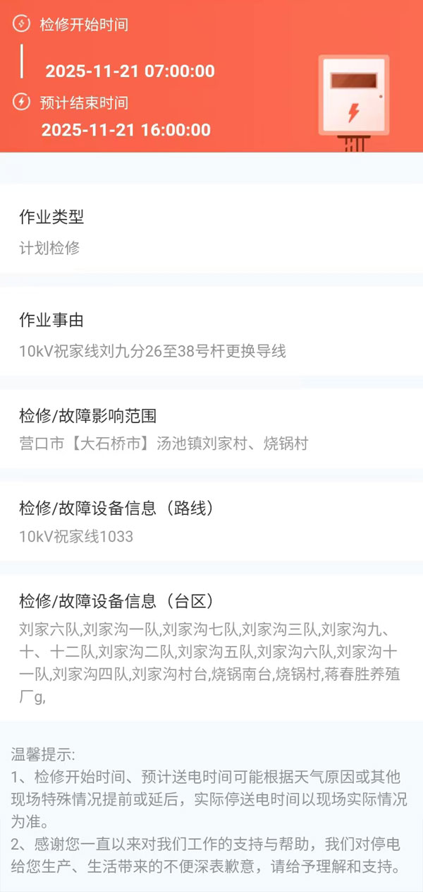 2025年11月21日 大石橋市電網(wǎng)檢修公告 |