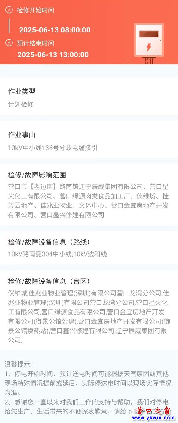 2025年06月13日 老邊區(qū)電網(wǎng)檢修公告 |