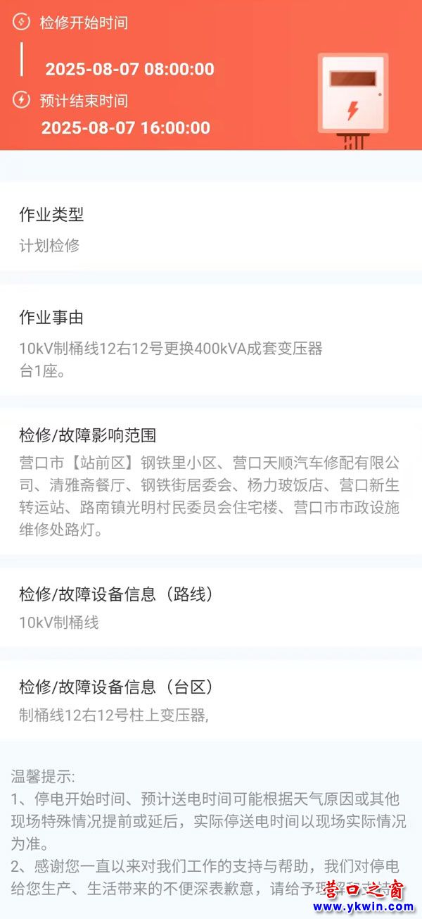2025年08月07日 站前區(qū)電網(wǎng)檢修公告 |