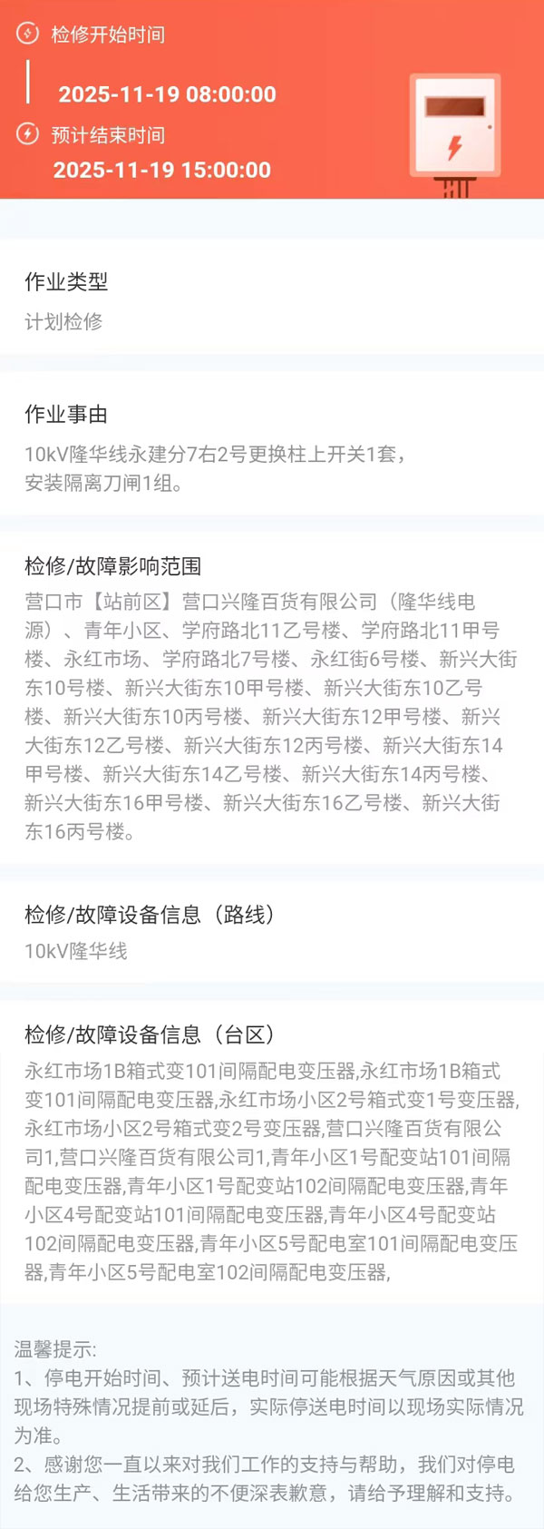 2025年11月19日 站前區(qū)電網(wǎng)檢修公告 |