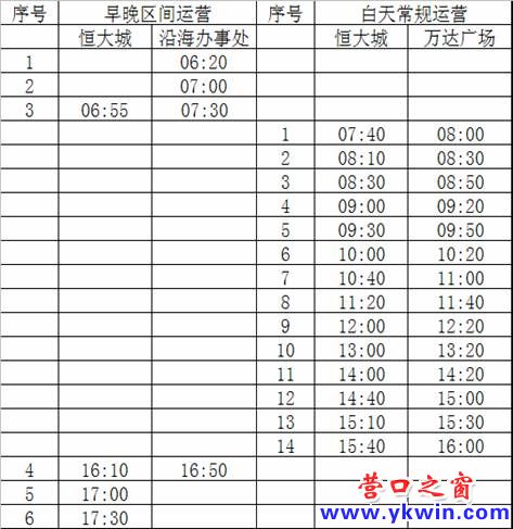 1、白天“恒大城”7:40-10:40時段間隔30分,10:40-12:00時段間隔40分,12:00-14:00時段間隔60分,14:00-15:40時段間隔30-40分;萬達廣場20分鐘回返。