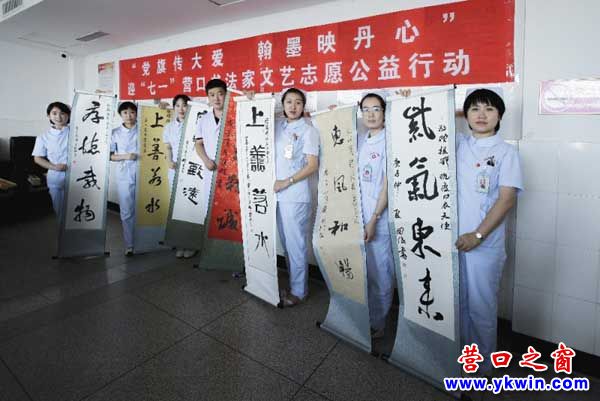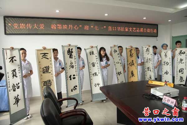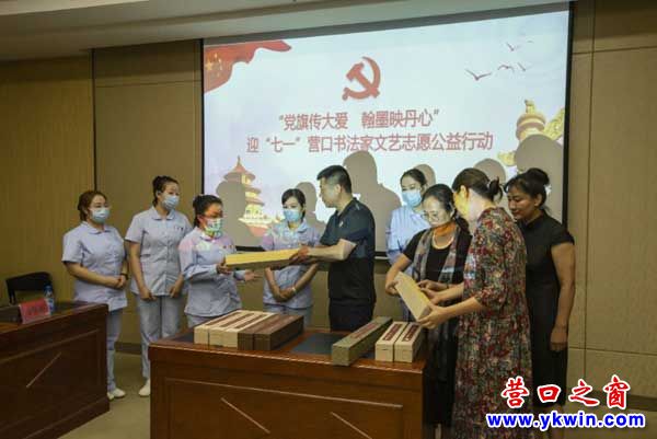 6月30日—7月1日,由中共營口市委宣傳部,營口市文聯(lián),營口市衛(wèi)健委,營口市書法家協(xié)會,營口市文藝志愿者協(xié)會聯(lián)合舉辦的“黨旗傳大愛 翰墨映丹心”迎“七一”書法志愿者公益行動如期舉行。此次活動中,營口市書法家協(xié)會全國會員及主席團成員創(chuàng)作了40多幅根據(jù)援鄂白衣天使心愿書寫的書法作品,在“七一”黨的第九十九個生日到來之際,作為生日禮物贈送給援鄂的醫(yī)護工作者,表達營口文藝工作者的一片心意。藝德醫(yī)德手拉手心連心,共同慶祝黨的九十九歲華誕。