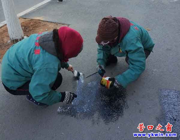 今早不到十點(diǎn),網(wǎng)友再次路過小雨園小區(qū)北門馬路,看到兩名工作人員正在用黑色油漆涂抹在昨日看到的“燒紙死你全家”(參見昨日營(yíng)口之窗百姓說事文)等咒語(yǔ)上。