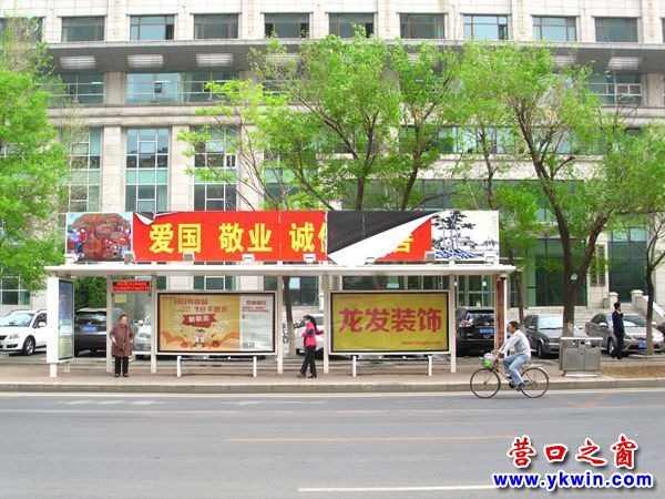 5月9日,走在營(yíng)口市渤海大街上,映入眼簾的是一幅花紅柳綠,清新整潔的美景,令人賞心悅目??墒堑搅饲嗌倌陮m附近看到了公交車候車棚頂?shù)钠茡p廣告時(shí)眼前的愉悅卻打了折扣。
