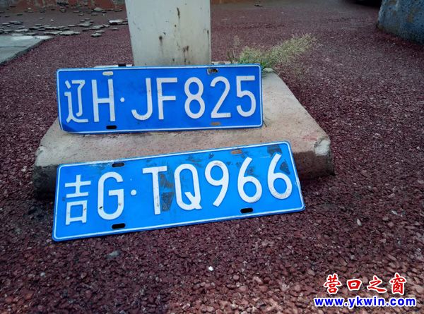 營口市氣象臺路口邊擺出六個車牌(車牌招領)