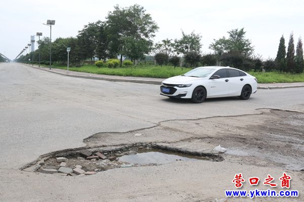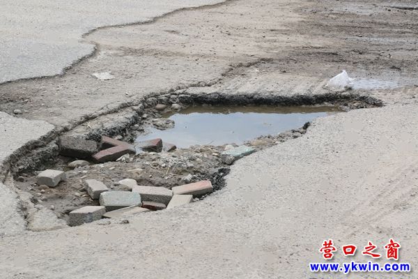 (營(yíng)口之窗網(wǎng)“百姓說事”)日前,在營(yíng)口市西市區(qū)遼河大街與科飛路十字路口處看到,這里的路面坑洼不平,出現(xiàn)嚴(yán)重破損,除影響通行外,還極易導(dǎo)致車輛底盤剮蹭受損,騎車就更危險(xiǎn)了,給市民通行帶來不便和安全隱患。希望有關(guān)部門對(duì)此段路面進(jìn)行適當(dāng)維護(hù)。(李凱)