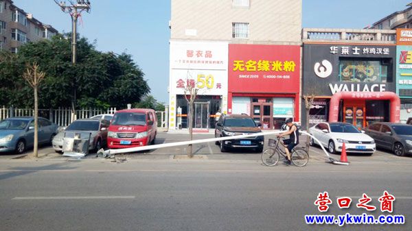 8月18日8點(diǎn)多鐘,經(jīng)過營(yíng)口市東風(fēng)路公交車中天御景灣站附近,見到兩名環(huán)衛(wèi)工人正在用手機(jī)報(bào)告一個(gè)高大的路燈倒了,并清理由此產(chǎn)生的垃圾。