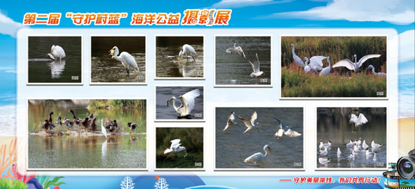 展覽現(xiàn)場,一幅幅精美的攝影作品讓人目不暇接,流連忘返,作品展現(xiàn)了一幅幅動人的畫卷,靈動可愛的白鷺等水鳥,在攝影師的鏡頭下栩栩如生,展現(xiàn)了海洋生態(tài)的豐富與和諧。