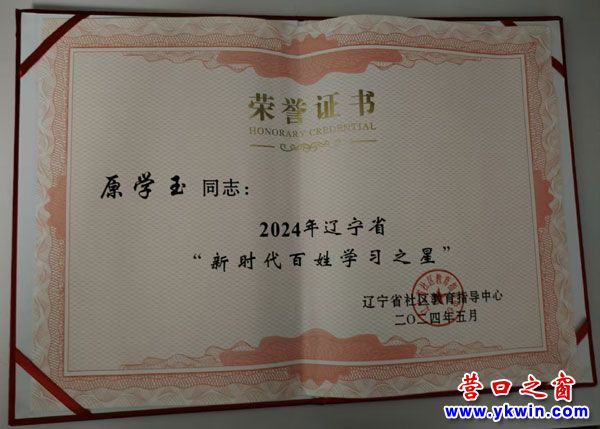 (營口之窗“百姓說事”)祝賀原學(xué)玉老師榮獲得2024 年遼寧省“新時代百姓學(xué)習(xí)之星”稱號