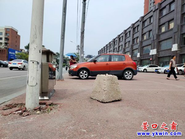 7月5日中午,經(jīng)過營口銀行東風(fēng)支行(建設(shè)街東端)對面,見到人行道上有一個大混凝土坨子被隨意扔在那里,無用的它無疑就是一塊絆腳石。
