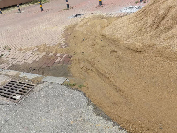 在營(yíng)口市通惠門市場(chǎng)北側(cè)有一段通往遼河大街、合龍大酒店叫利民路,正在修復(fù)人行道板,前幾天堆放了一些砂子準(zhǔn)備施工用,28日一場(chǎng)大雨沖進(jìn)下水道內(nèi)不知有多少。難怪營(yíng)口市人又現(xiàn)“城市看海”。