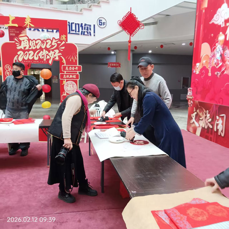 臘月二十五,營(yíng)口市圖書大廈一樓大廳寬敞明亮,舞臺(tái)和背景以大紅為底色,格外喜慶。“2026年福至萬(wàn)家送春聯(lián)活動(dòng)”在這里隆重舉行。今天,我市的楹聯(lián)學(xué)會(huì)的書法家們齊聚一堂,現(xiàn)場(chǎng)揮毫潑墨,為與會(huì)的百余位嘉賓寫聯(lián)送福。人們爭(zhēng)先恐后,選出心儀的詩(shī)句,在歡樂(lè)的氣氛中,加深了對(duì)傳統(tǒng)文化的認(rèn)同,對(duì)營(yíng)口楹聯(lián)學(xué)會(huì)不辭辛苦,義務(wù)為群眾服務(wù),和市圖書大廈面向社會(huì),積極投入,精心組織大加贊揚(yáng)。