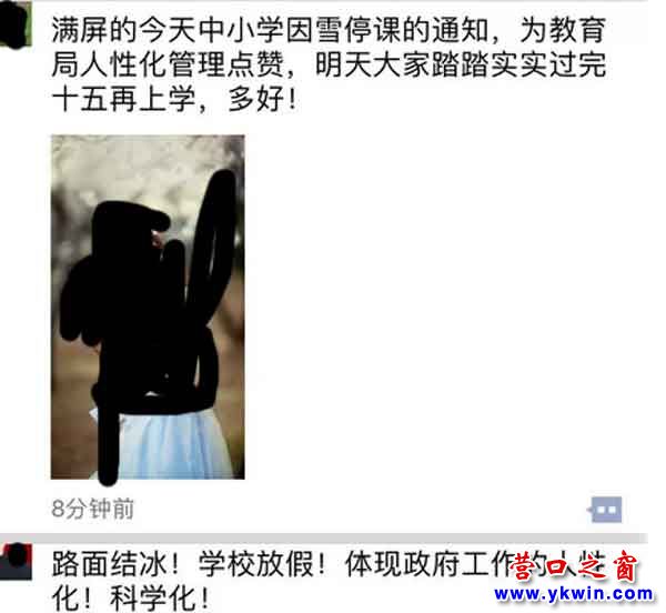 點(diǎn)贊者語(yǔ)言很正能量,也很統(tǒng)一:為教育局人性化管理點(diǎn)贊。路面結(jié)冰!學(xué)校放假!體現(xiàn)政府工作的人性化!科學(xué)化!