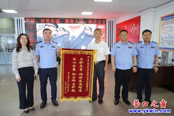 (營(yíng)口之窗網(wǎng)訊 王宏鑫)9月8日,營(yíng)口市開(kāi)發(fā)區(qū)第二十九中學(xué)將寫(xiě)滿敬意的錦旗送到了營(yíng)口開(kāi)發(fā)區(qū)公安局交警大隊(duì),濃濃感動(dòng)化為禮贊,以此表達(dá)他們對(duì)交警大隊(duì)維護(hù)校園周邊交通的感激之情。