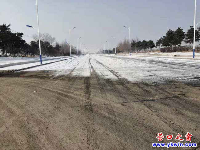 事情是這樣的:外地客人得知營口是最具幸福感城市非常羨慕,于是選擇從營口沿海產(chǎn)業(yè)基地新聯(lián)大街東出發(fā)觀光一下美麗的海濱城市。一路途徑營口市人民政府、公檢法等雄偉建筑,奔向西海岸。筆直寬闊的柏油馬路,清潔的路面讓客人感到營口城市文明建設(shè)非常不錯(cuò)。然而,當(dāng)車行駛到距離西海岸海濱浴場(chǎng)幾百米處時(shí),前面路面白雪鋪地汽車開始打滑,出現(xiàn)了黑白交界路面。