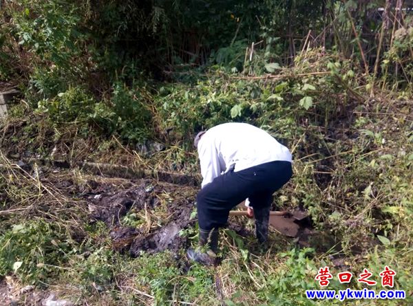 學(xué)雷鋒的老人正在疏通涵洞積水