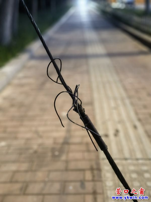 昨晚,走到營口市西炮臺轉盤東南角不遠的地方人行道上,差點被固定在人行道上的斜拉線沿脖子攔倒,嚇的一身冷汗。站在哪兒穩(wěn)定好一會兒。我就納了悶了,怎么竟能在人行道的正中央固定斜拉線?百思不得其解。正楞在哪兒的時候,有一對散步行人也是差點被攔倒,緊接著兩個騎電動車的過來更是險些撞上!我楞在那兒忽然被花壇上的帶有警告護套的斜拉線所吸引。(見圖)這也太不可思議啦!走人的道上不僅拉線還沒有警示防護套,反而不走人的花壇上的斜拉線竟套上警示防護套,這不是胡鬧嗎!