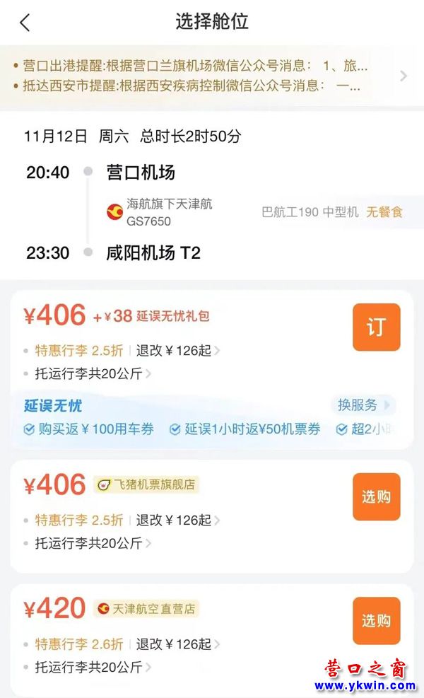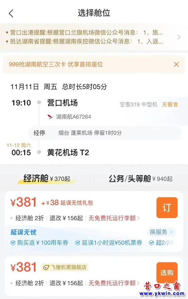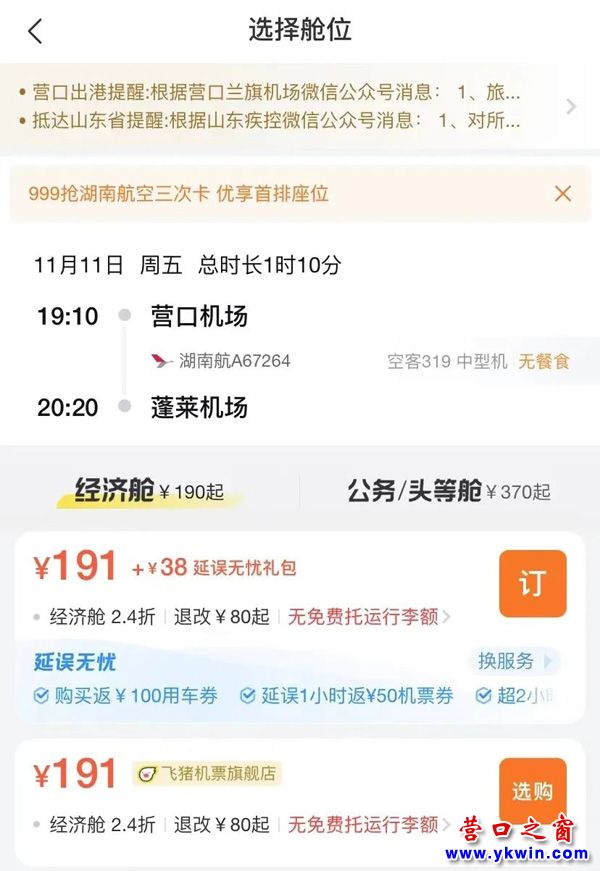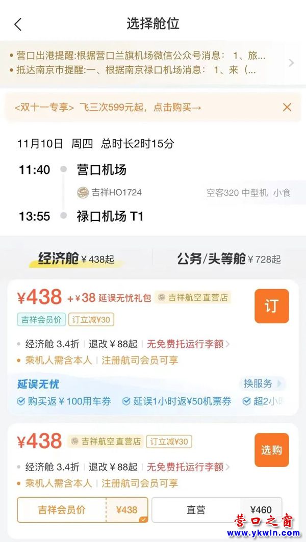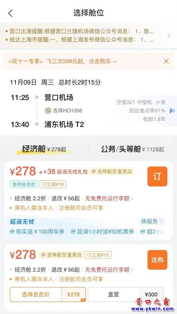 (營口之窗“關(guān)注營口”)營口機(jī)場機(jī)票雙十一來嘍!這波羊毛我先薅為敬…