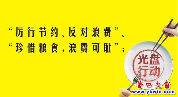 (營(yíng)口之窗網(wǎng)訊 欣聞)為貫徹落實(shí)習(xí)總書(shū)記近日對(duì)制止餐飲浪費(fèi)行為作出的重要指示精神,在全社會(huì)營(yíng)造浪費(fèi)可恥、節(jié)約為榮的濃厚氛圍,推動(dòng)杜絕“舌尖上的浪費(fèi)”成為全社會(huì)的共識(shí)和行動(dòng),在鞏固“光盤行動(dòng)”的階段性成果基礎(chǔ)上,營(yíng)口市市場(chǎng)監(jiān)督管理部門重點(diǎn)開(kāi)展以下幾方面工作。