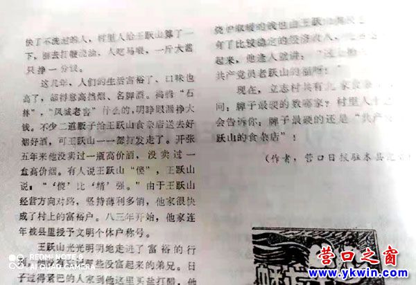 以下是記者車(chē)向前先后在營(yíng)口日?qǐng)?bào)、蟠龍山雜志發(fā)表《共產(chǎn)黨員王躍山食雜店》作品的圖文拍照: