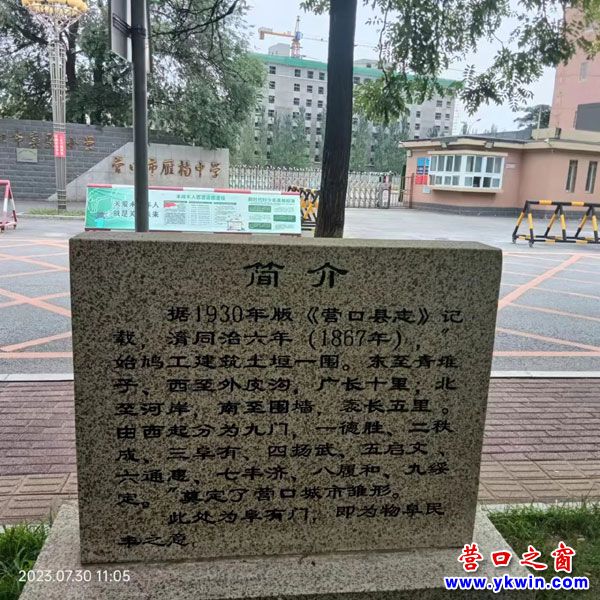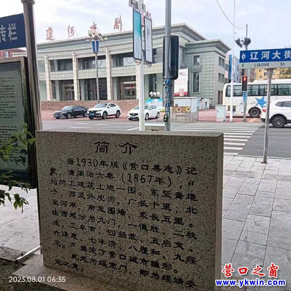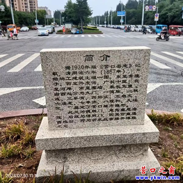 據(jù)“營(yíng)口發(fā)布”的記者報(bào)道:2022年末,營(yíng)口市住房和城鄉(xiāng)建設(shè)局聯(lián)合相關(guān)部門(mén)和領(lǐng)域的專(zhuān)家,經(jīng)過(guò)對(duì)營(yíng)口市九門(mén)遺址的史料考證和現(xiàn)址對(duì)照,確定九門(mén)現(xiàn)地位置,科學(xué)規(guī)劃施工,設(shè)立九座石碑,讓九門(mén)有了“身份證”。筆者得知這個(gè)消息特別感興趣,同時(shí)覺(jué)得市政府有關(guān)部門(mén)以及市新聞媒體的編輯記者對(duì)營(yíng)口市九門(mén)遺址的立碑建設(shè)和宣傳工作髙度重視真的是做了一件蔭及后人,公德無(wú)量的大好事!于是最近筆者按圖索驥,對(duì)九座石碑進(jìn)行了考察攝影,并且依照記者劃定的游覽路線(xiàn)首先從市區(qū)東部的綏定門(mén)走起,把每座石碑配上自己的體會(huì),同時(shí)還把我自己的行走路線(xiàn)祥細(xì)介紹一下,供大家參考。這里面的圖、文、詩(shī)一并也請(qǐng)各位看官、專(zhuān)家、老師們批評(píng)指正。