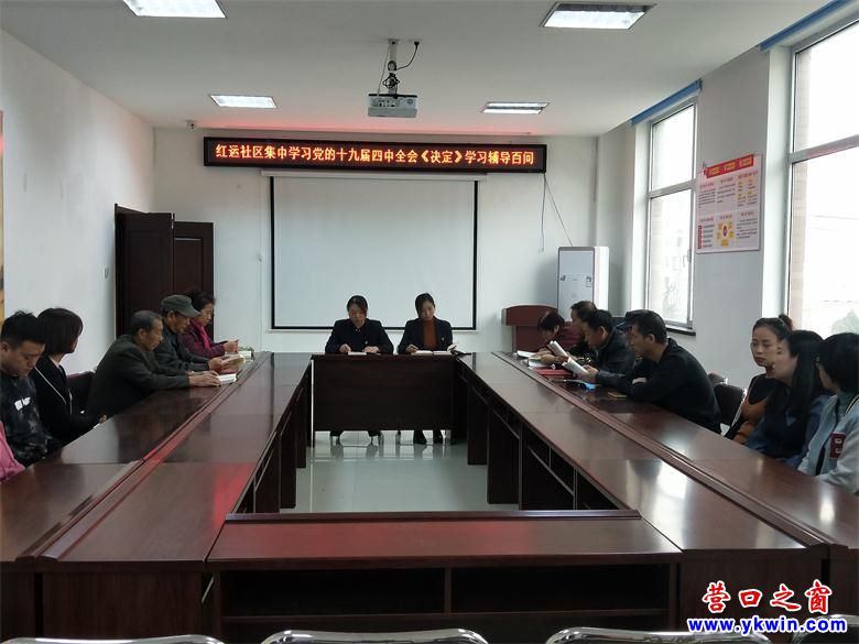 為使廣大黨員群眾深入學(xué)習(xí)黨的十九屆四中全會(huì)精神,11月21日上午,紅運(yùn)社區(qū)組織各支部書記、全體社區(qū)工作者學(xué)習(xí)黨的十九屆四中全會(huì)《決定》學(xué)習(xí)輔導(dǎo)百問。