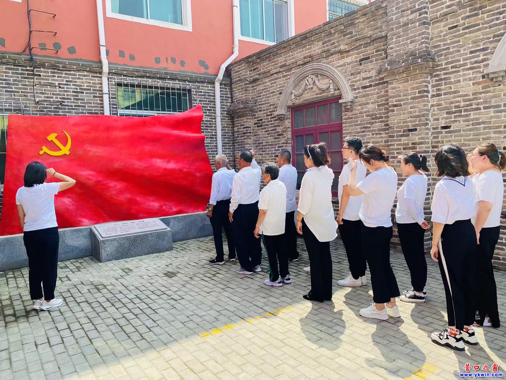 走進紀念館,一幅幅珍貴圖片,一個個革命故事,再現(xiàn)了解放前營口地方黨組織成立和黨帶領營口人民開展革命斗爭的歷史史實,深深觸動著在場每個人的內心。參觀過后,全體黨員在鮮紅的黨旗下莊嚴宣誓,重溫入黨誓詞,共憶入黨初心,錚錚誓言,鏗鏘有力。